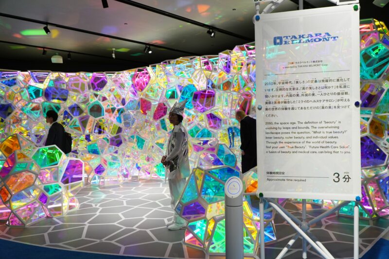 同社ブースは、新規事業として目指す美容と医療が融合した「ミライのヘルスケアサロン」が叶える宇宙時代の美を、リアル展示とデジタルコンテンツを通じて提供。同社は1970年の大阪万博にも、中小企業で唯一独自のパビリオンを建設し、「タカラ・ビューティリオン」を出展しています。