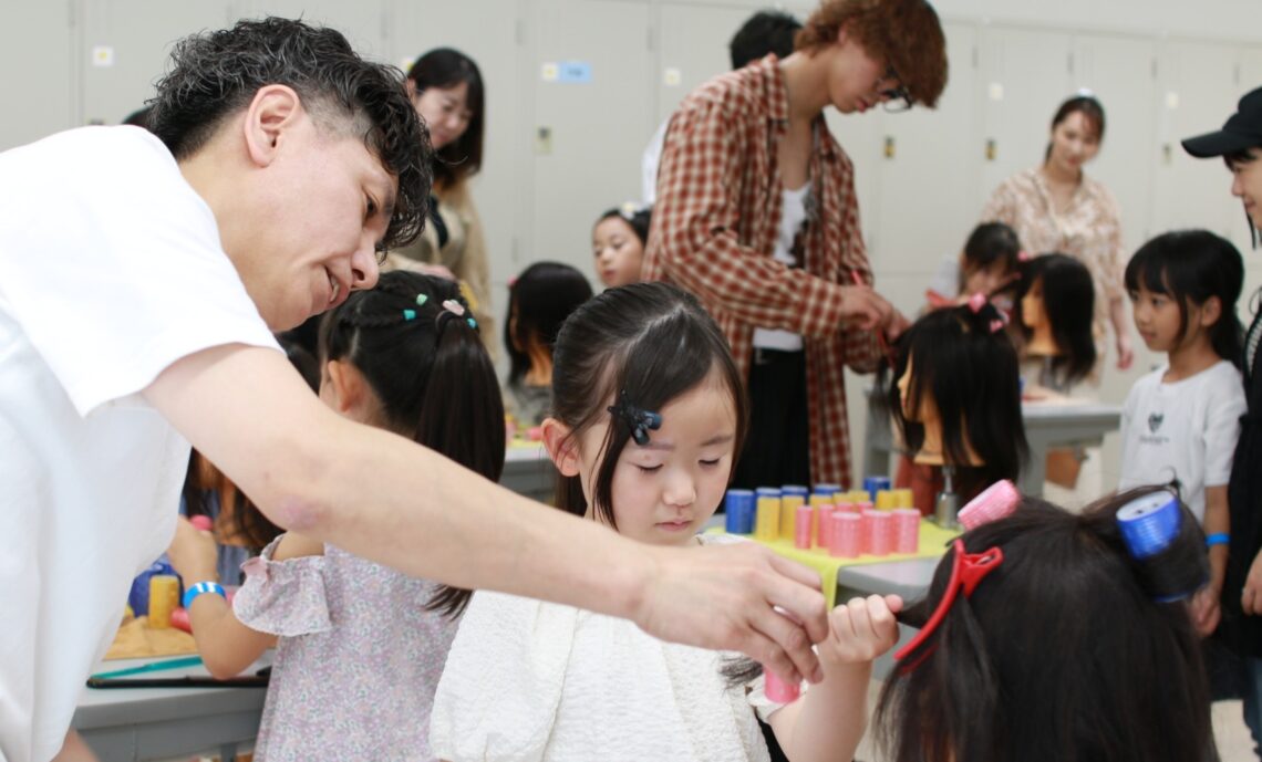 子どもたちがカットやアレンジ、ネイル、メイク体験を楽しむ