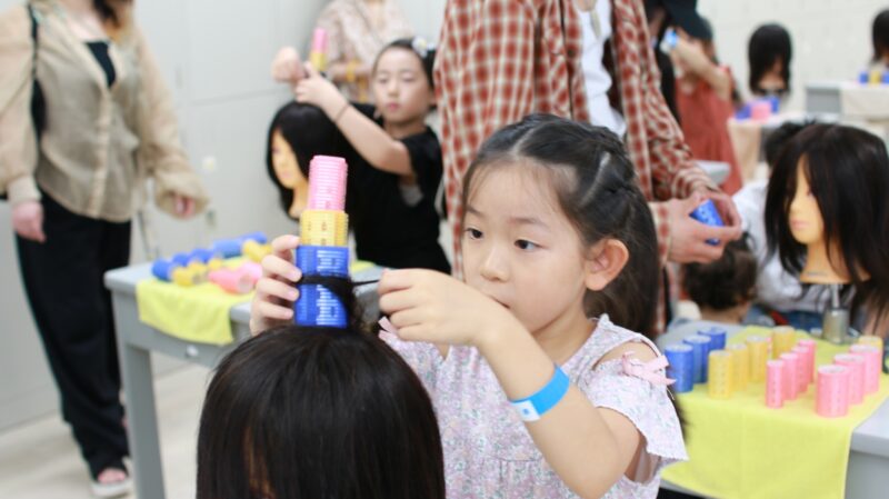 プロの設備や道具を使った美容師体験は参加の子どもたち、保護者に好評。夏休みの思い出の一つになりました