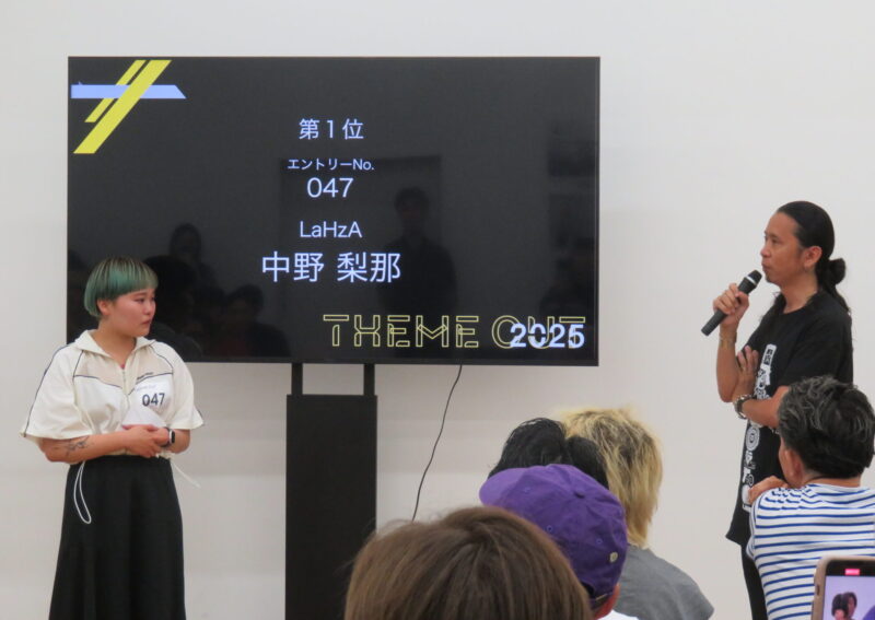 総評を話す神谷氏とそれを聞く1位の中野さん。全国20会場で開催される予選大会通過者は、11月25日に行われるファイナルに出場します