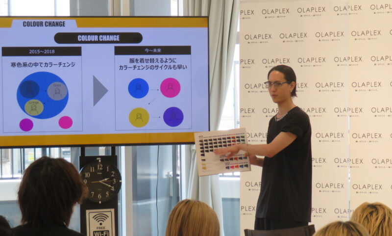 自社教育について「まずはミルクティーベージュとピンクを極めてもらう。①ブリーチの数をこなす②スピード③質、この順番を大切にしている」と話しました