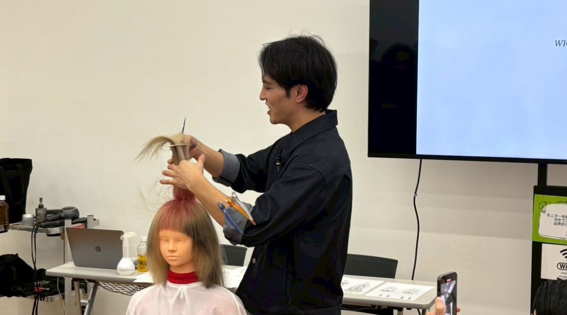 さまざまなコンテストで上位常連のTLACE.代表の椿倉章吾氏が講師を務め、コンテストに向けたクリエイションのやり方や考え方を詳しくレクチャーする、全2回の体験型実践型対策セミナー。コンテスト対策の1つとして、モデルを生かす衣装なのかを考えるのが大事と伝え、「モデルの優れている容姿を生かすこと。必ず一つはある。そういうモデルを見つけることも大事」と話しました。また2025年のファッションの主な傾向と流行についても語りました。