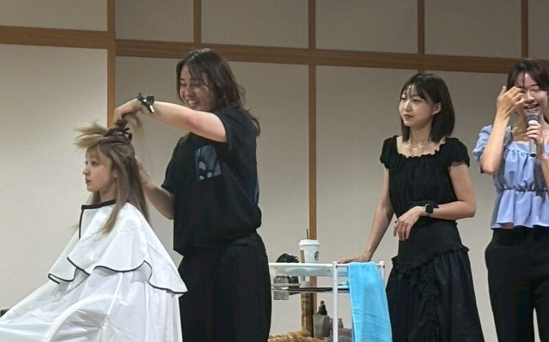 ハヌン氏は「トップの量を減らさないと動きが出にくい。内側を減らすことでキレイに動きが出て、お客さまもドライヤーで乾かしやすくなる」と伝えました
