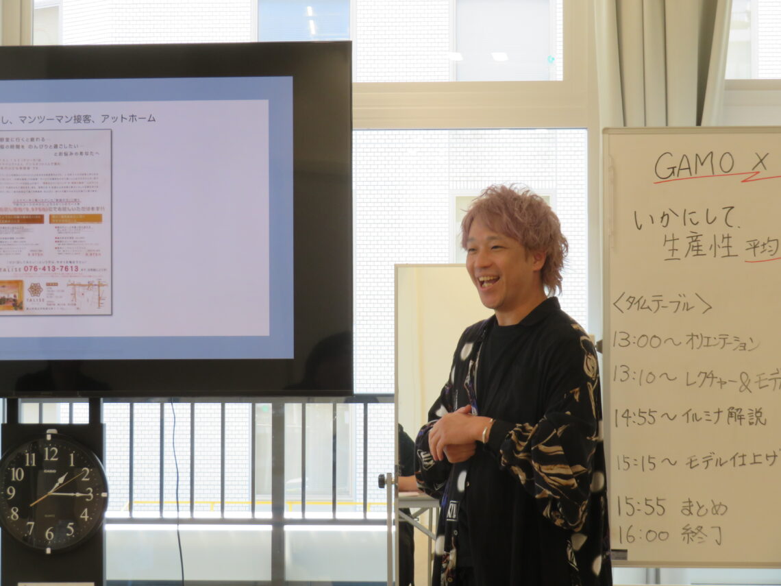 (株)ガモウ岐阜支店(鈴木亮支店長)は6月30日、同社岐阜支店で「いかにして生産性平均¥17,000を生み出しているのか」を開きました。