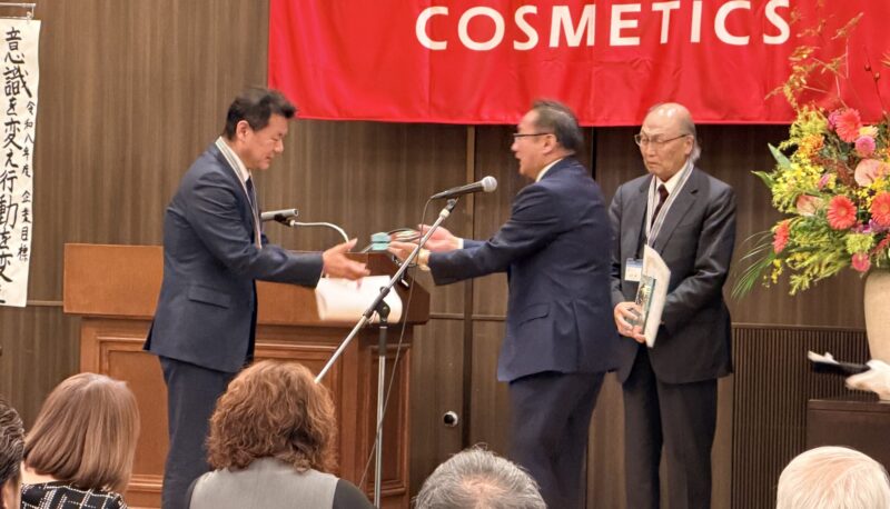 宮副社長が参加の会員に、9月に逝去した宮副孝夫前会長の生前の厚情への感謝と、10月に開催したオーナーセミナーの報告を述べた。宮副社長は令和8年度の企業目標を、「意識を変え、行動を変え、新たな仕組みづくりの年」と発表。「創髪プログラムの試みで新規サロンが150店増、フェイスメニューのどろパック導入にもつながった」と好調な業績を伝えました。営業部政策発表では、藤原泰浩部長が来年3月発売の美容抗体スキンケア「セラポロジー」について説明。また、美容抗体スキンケア「セラポロジー」に含まれるダチョウ抗体について、京都府立大学学長の塚本康浩博士が特別講演を行いました。